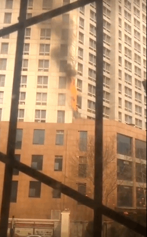 消防隊員在外部使用高噴車4-5臺進行外控滅火,另外組成內(nèi)攻小組進入樓內(nèi)進行滅火和控制。下午5時,現(xiàn)場傳回應(yīng)急管理部消防救援局指揮中心的視頻顯示,大廈外部火災(zāi)已全部撲滅,消防救援人員正在大廈內(nèi)部進行現(xiàn)場清理。